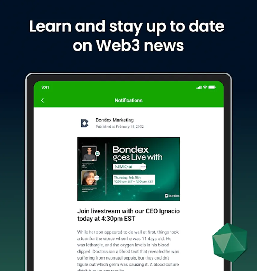 Unlike Web2 solutions, your participation and engagement in the network will be rewarded. As Bondex grows, so will the incentives for users. Get in early and stay tuned for unique rewards, engaged users will have an opportunity to be eligible for airdrops.