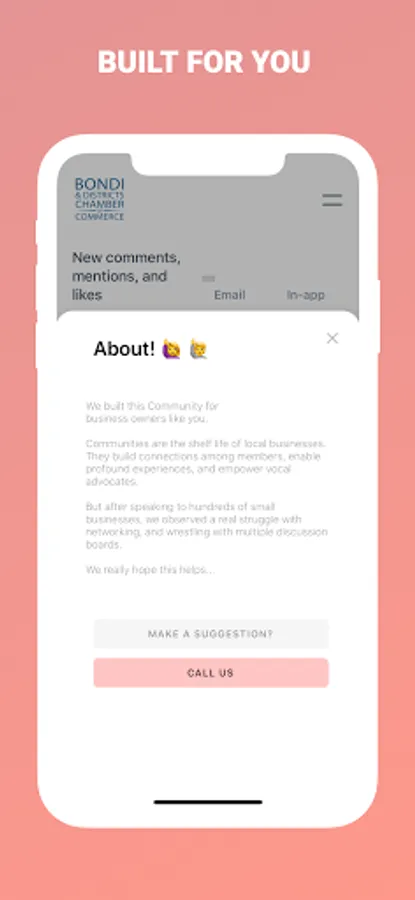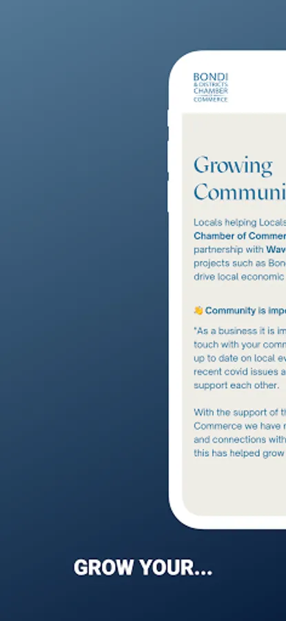 With the Bondi & Districts Chamber of Commerce, local business advocates are at your fingertips. Just open the app and start a discussion on what you need, and a local mentor will help you get the answers you need!