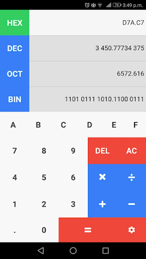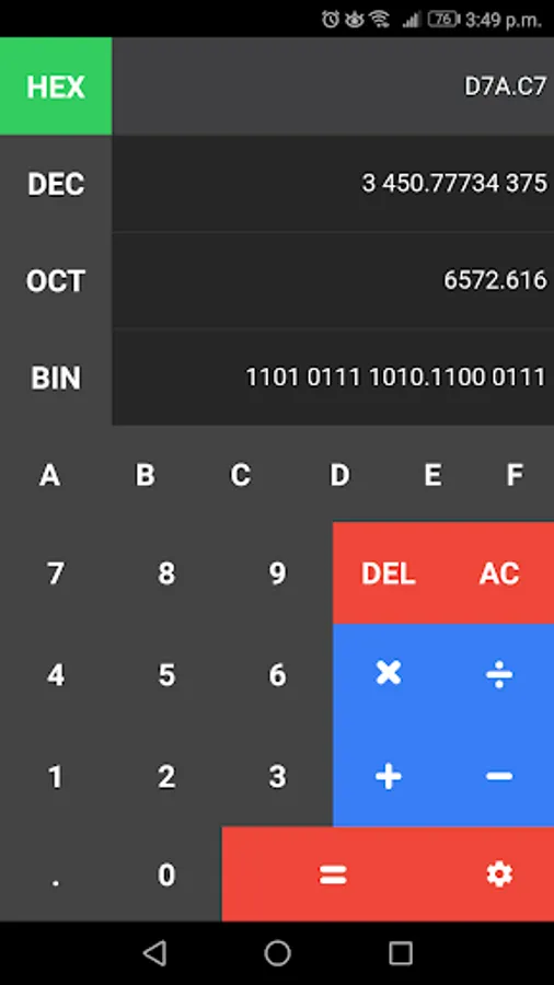 Bases supported: Binary, Octal, Decimal, Hexadecimal.