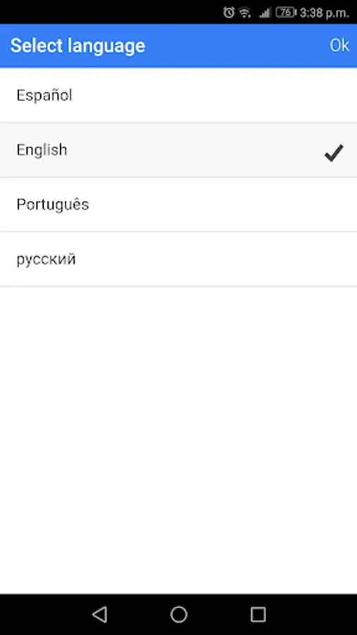 Available Languages (Spanish, English, Portuguese, Russian)