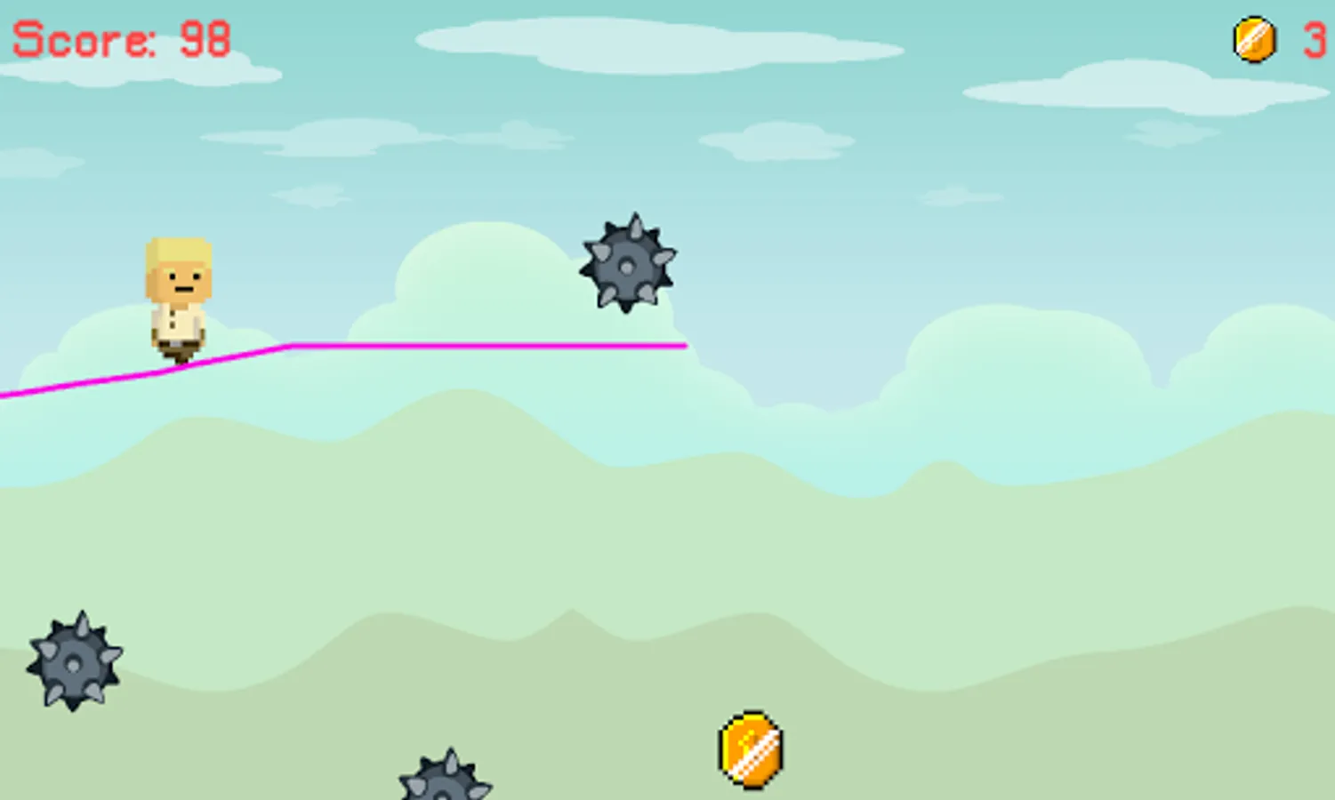 The game is challenging yet easy to understand. Just keep an eye on the deadly hurdles and keep moving the pixel art character down the line road. You can dash through the big moving obstacles to achieve more score. You may have to do hill climb for lower enemies. Continue the journey in this awesome road draw game. The side scroller brain game gives the experience of sky journey. Avoid the obstacles along the way. Draw perfect physics based line road to avoid the clash. If the Pixel art character hit the hurdle, game will be over.