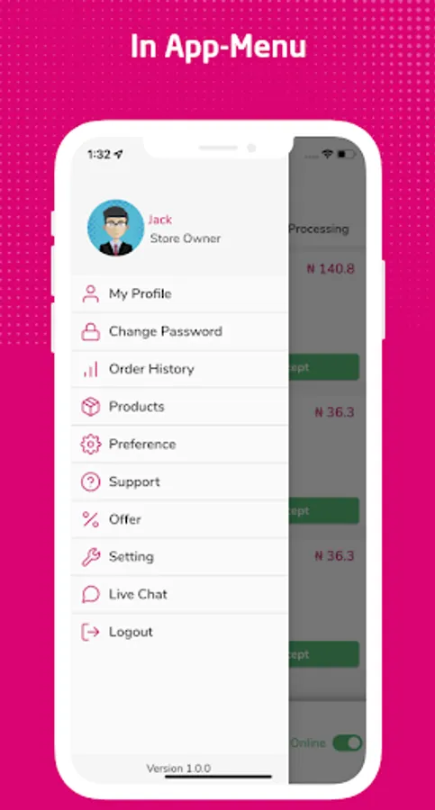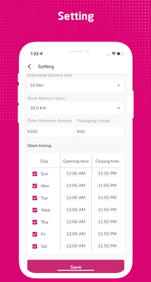 -Manage store details like store time, manage product status, packaging charge, delivery radius, minimum order amount, Estimated delivery time, and more