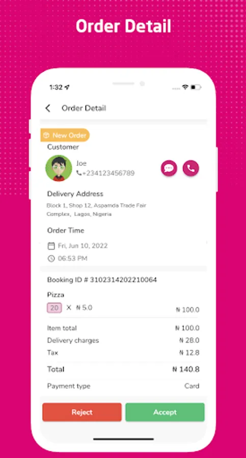 -Manage the order with a single tap – accept or reject it