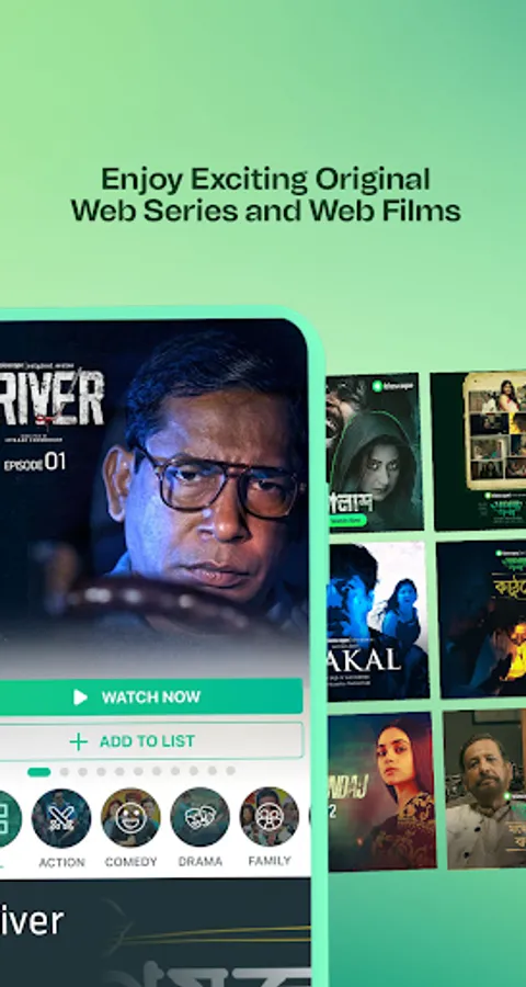 For movie lovers, we have all your favorite movies just a tap away; Bioscope brings all the trending & most popular Bengali movies like: Poramon – 2, Bengali Beauty, Inspector Notty K, Dhaka Attack, Koli 2.0, Laila Tumi Ki Amake Miss Koro?, Khacha, Bossgiri, Samraat, Feluda, Bioscope Originals and many more. Bioscope will surprise you with ‘Classics’, a nostalgic approach towards old Bengali classical films uninterrupted.