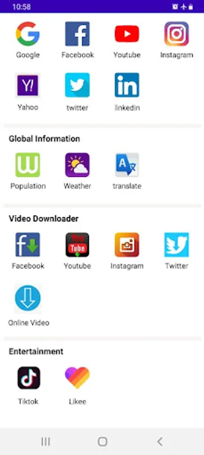 this is a browser app and first web communication. most helpful app in our society. downloader and global information more Entertainment .