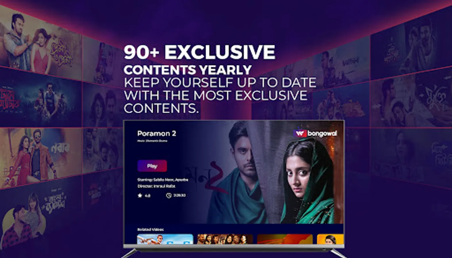 BongoWAL is an on-demand video streaming platform only for Walton and Marcel android TV in Bangladesh. Enjoy EXCLUSIVE content from your Walton/ Marcel android TV before anyone else. Subscribe to the world’s biggest Bangla content library with 50+ popular Bangladeshi and international live TV channels. Subscribe now to get access to more than 15,000 hours of Bengali Movies, Web Series, TV Shows, Bangla dubbed international content and a rich collection of kids content. Get the best in Bengali Entertainment you deserve!