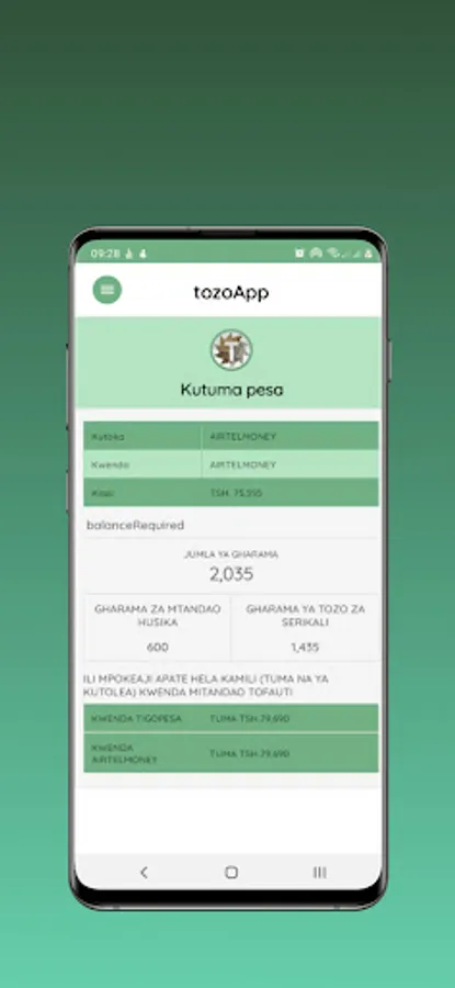 Tozo app (Tozoapp) Mfumo tumizi wa kuangalia gharama za miamala ya simu.