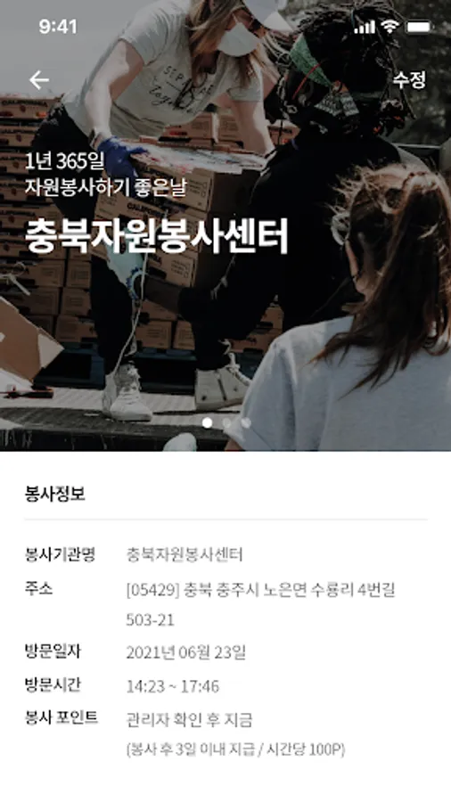 2) Volunteers check their activity records and participation history such as photos of volunteer activities along with registration certification