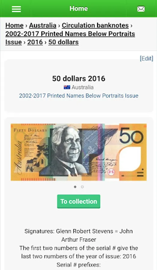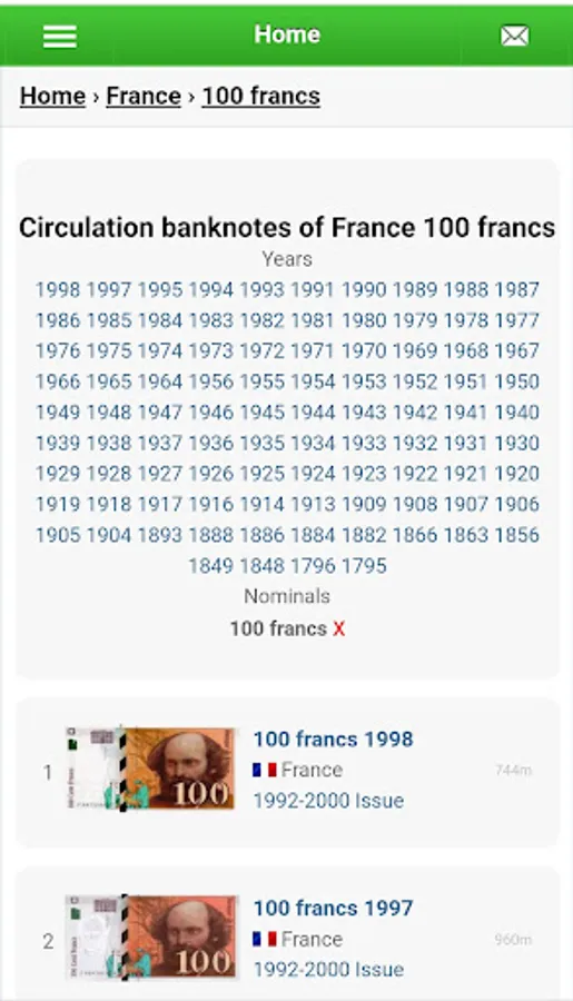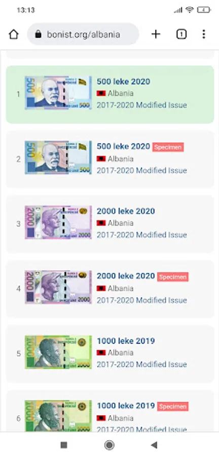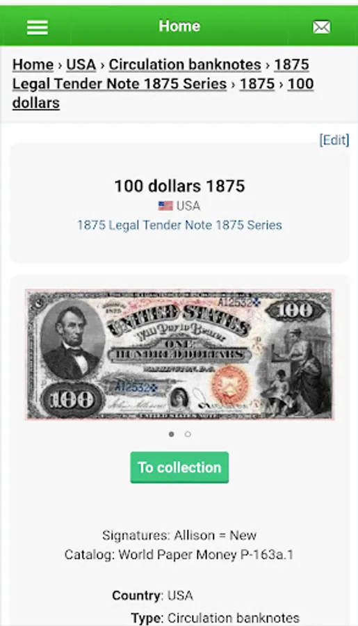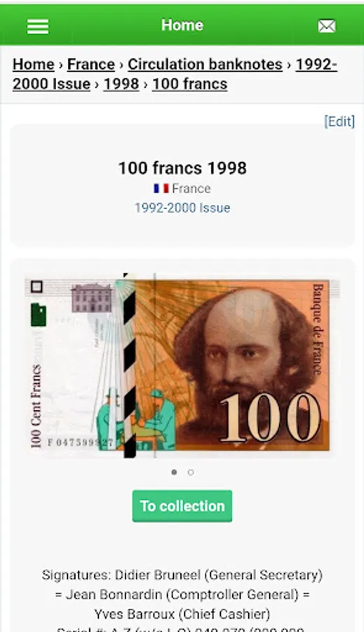 The banknote catalog will help you identify the banknote. Mark your banknotes and collect a complete collection.