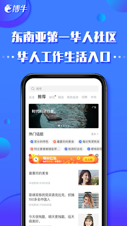 Boniu Community is a comprehensive news and information community app that integrates job-hunting and recruitment, local news, community forums, industry exchanges, food, travel, renting and buying a house and other convenient functions. Focus on providing fresh and timely information and convenient services for Chinese working and living in the Philippines, Southeast Asia and even around the world, helping everyone work and live better.