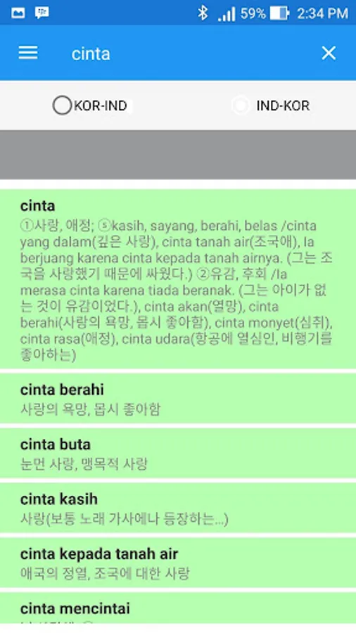 Application Dictionary (Offline) translation of words from Indonesian to Korean and Korean to Indonesian.