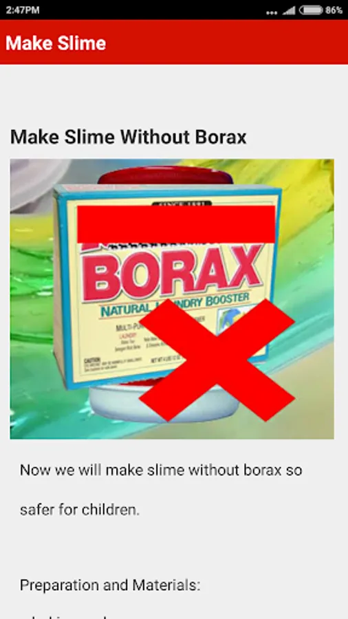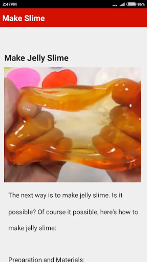 Slime is a blob of jelly chewy like when touched. Slime was so popular for child educational toys, slime form can be altered to change for exploration suit for child's imagination. In this application there are 16 howto make slime with the materials around us and easily obtained.