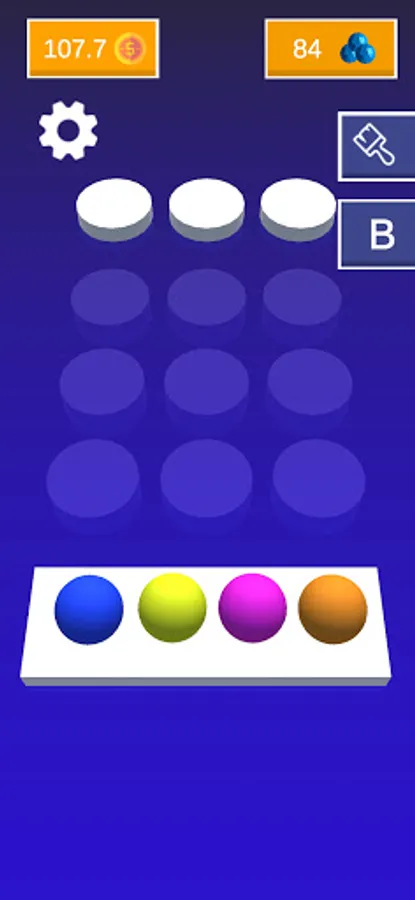 Solve the puzzle. You have 4 attempts to place the balls in their places. If the ball did not sink, it means that you guessed its place.