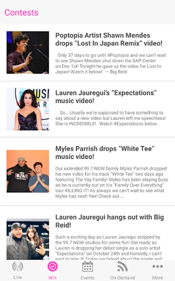 > Enter contests and play games for great prizes like cash & concert tickets.