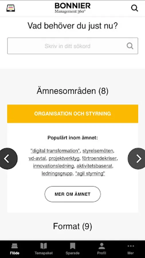 Bonnier Management 360 is designed for modern leaders and the contents are verified, updated and free of ads. It is produced by the best experts and presented in the form of in-depth texts, summaries, case studies, checklists, templates, advice, warnings, pods and videos. Find what you need via search, your behavior controlled sample flow, newsletter or theme pack.