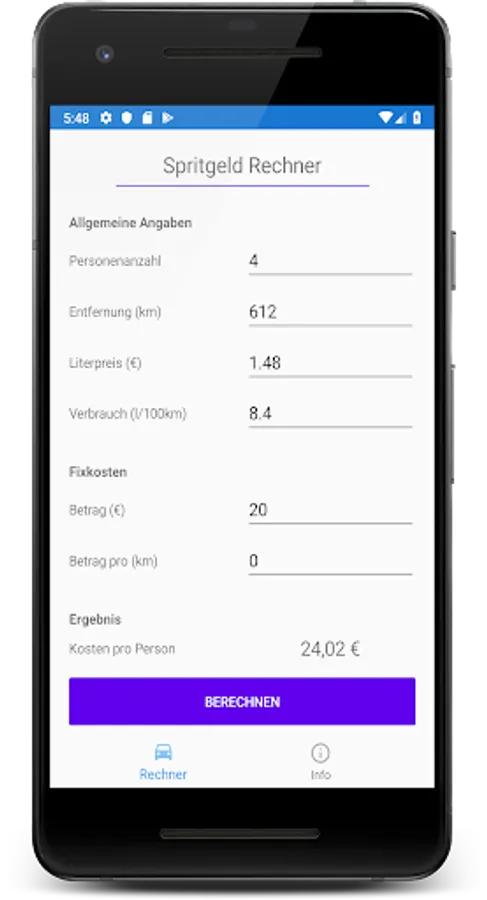 With our fuel money calculator, you can easily calculate how much money each person has to pay for the distance traveled. The fare is calculated based on their details. Currently, you can specify the number of people, the fuel consumption of the car, the petrol / diesel costs, as well as the distance traveled in kilometers.