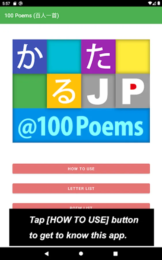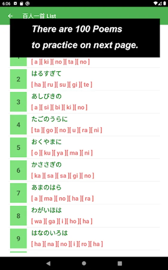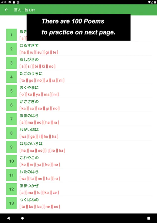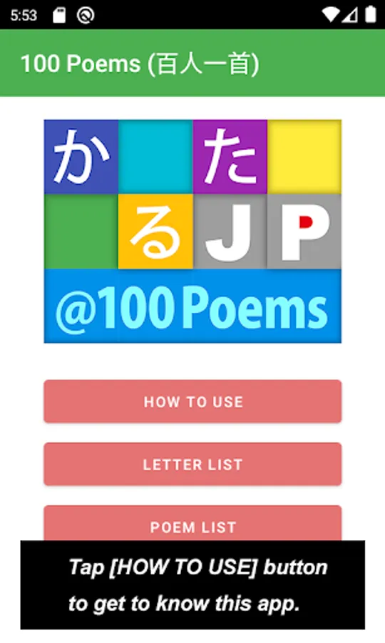 I hope that the app may help you to memorize 100 WAKA poems, so that you would be able to immerse yourself in Japanese literature and enjoy KARUTA game as well.