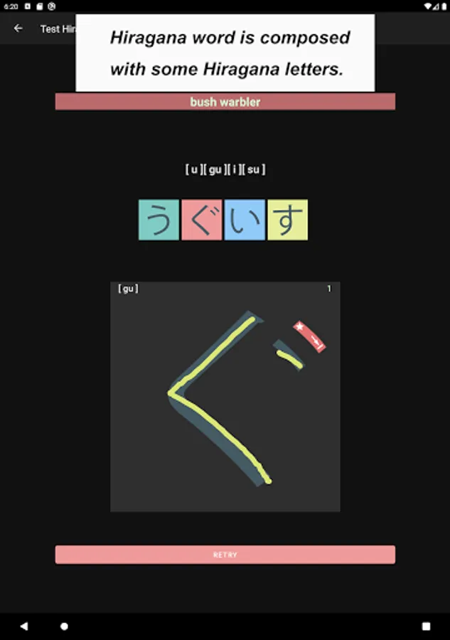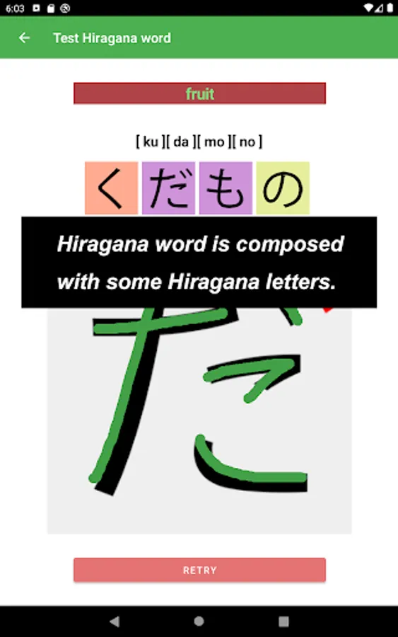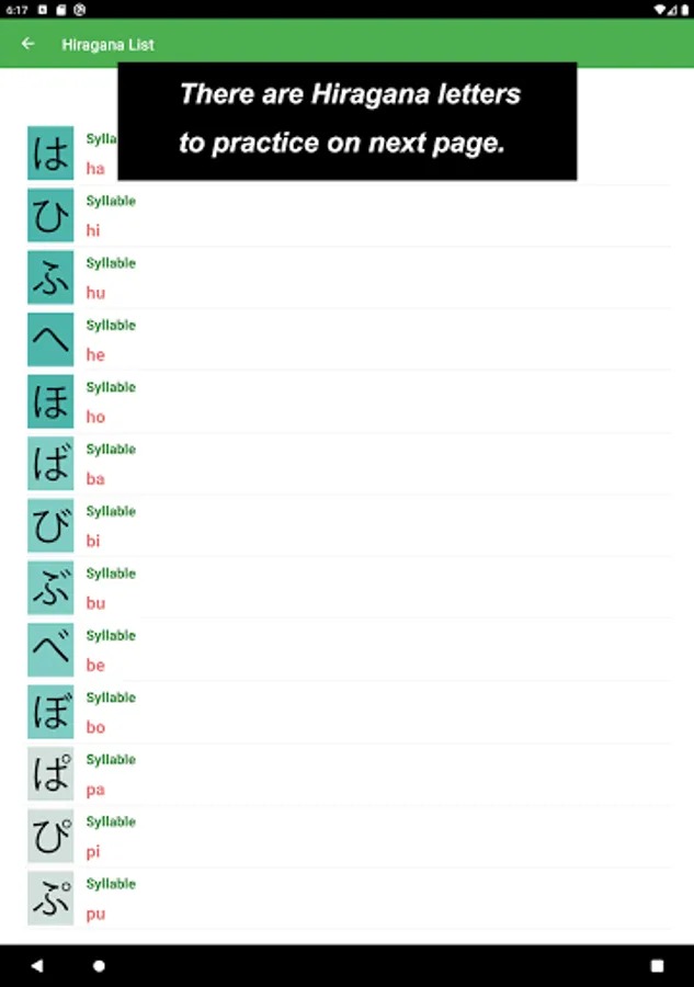 Secondly, you could practice Japanese words consisted of Hiragana letters.
