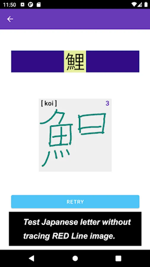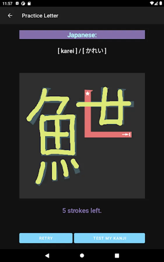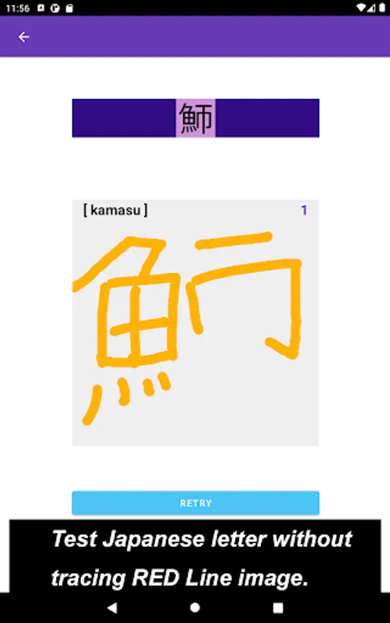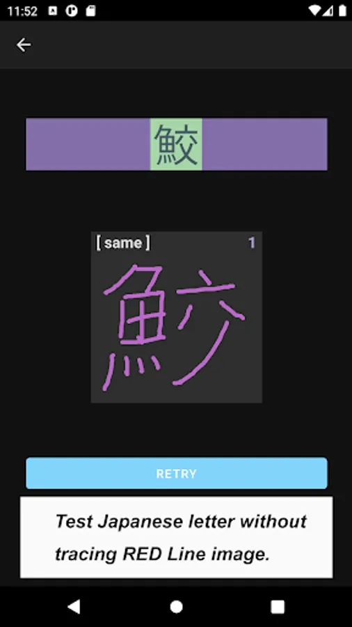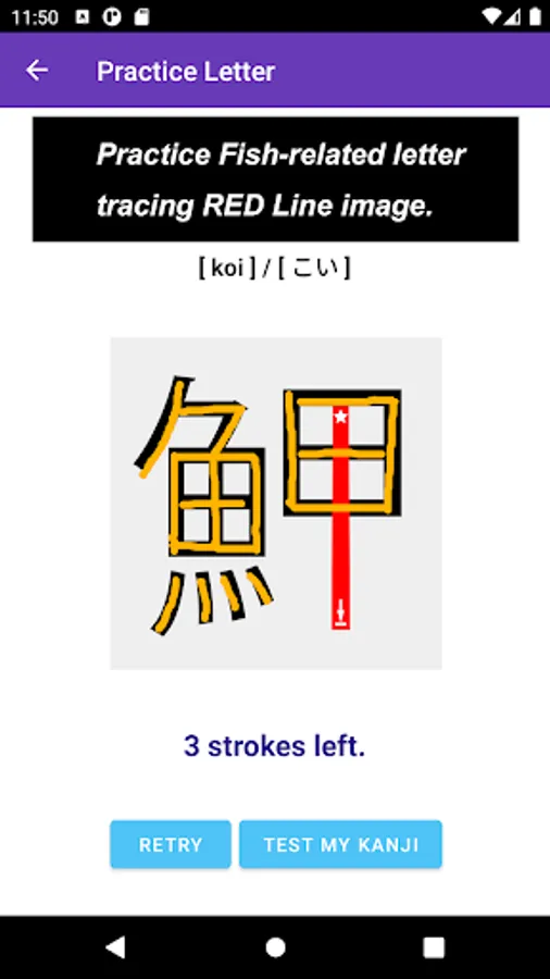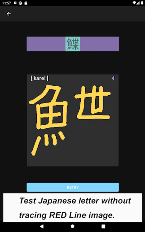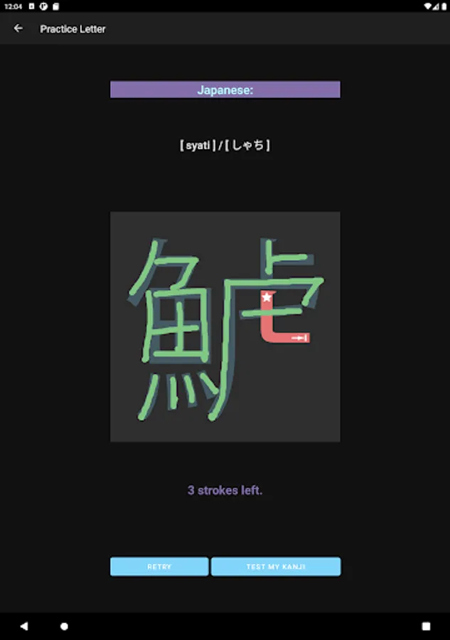The app also focuses on a single Kanji letter. All letters that you practice on JP Fish app mean fish though; at this time, some letters mean marine mammals, such as whale and killer whale.