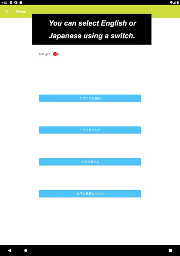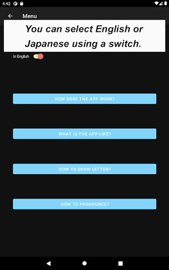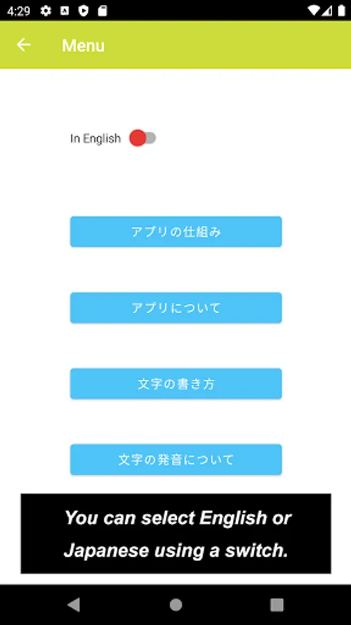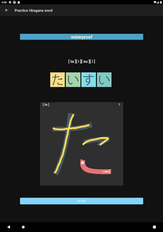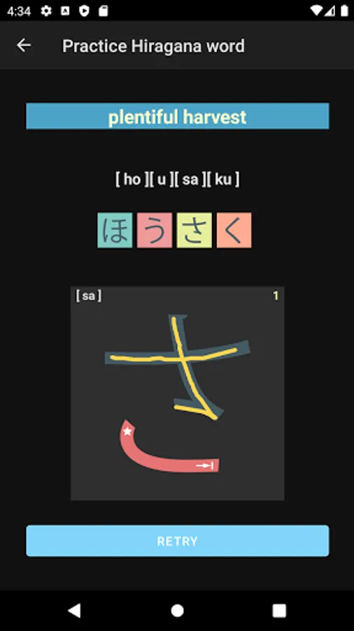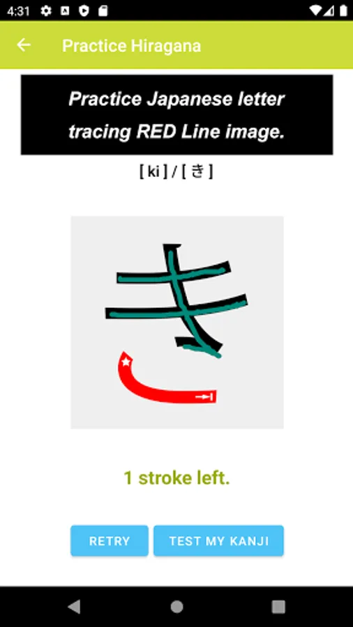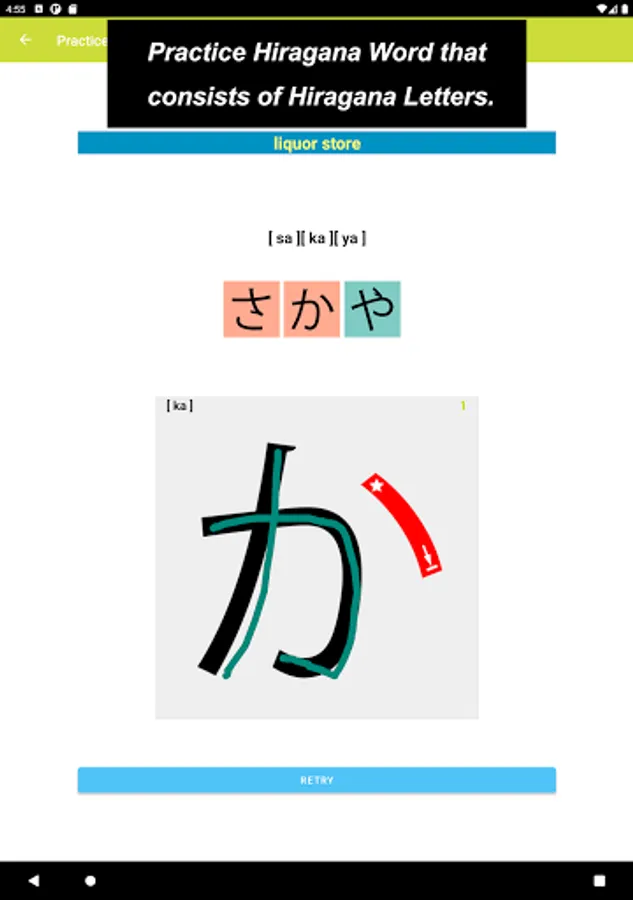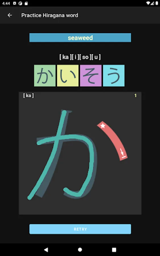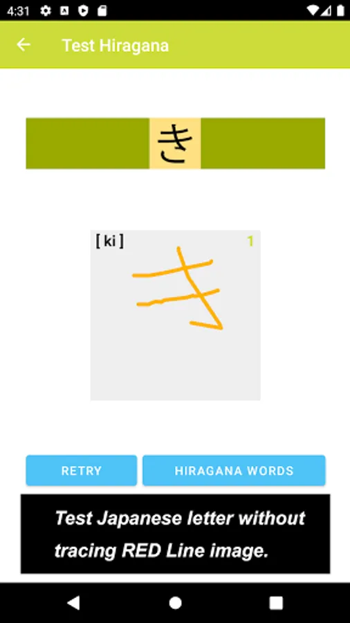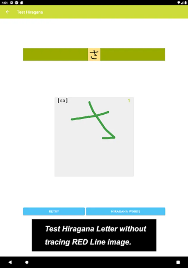 What you would see in this app is a list of Hiragana letters. If you tap one of those letters, you can practice how to draw its letter.