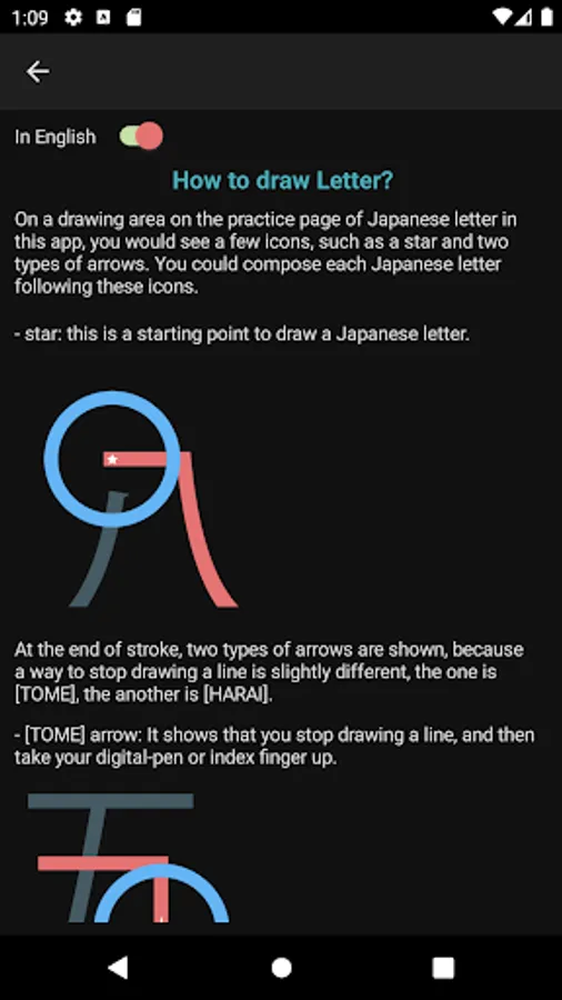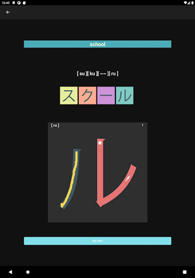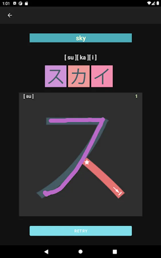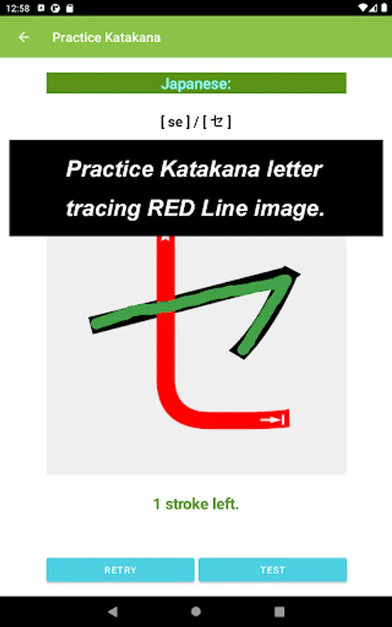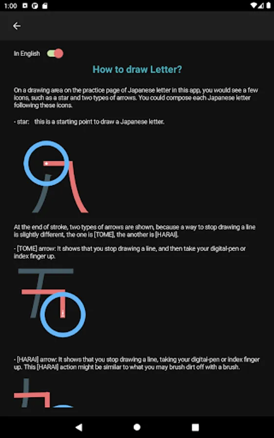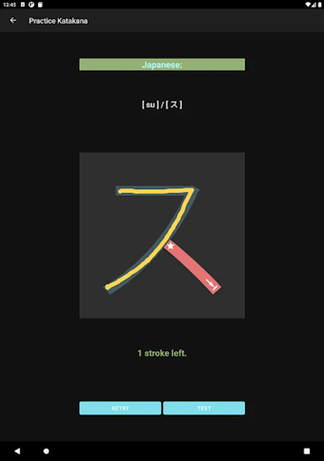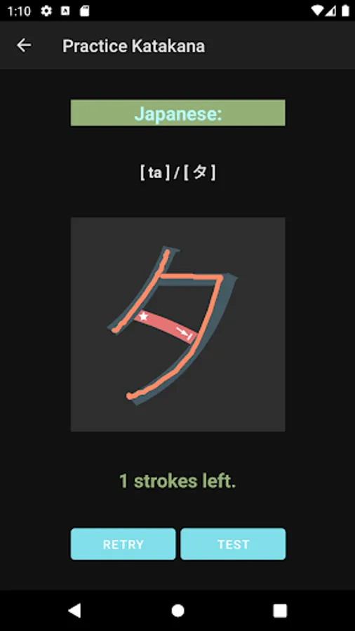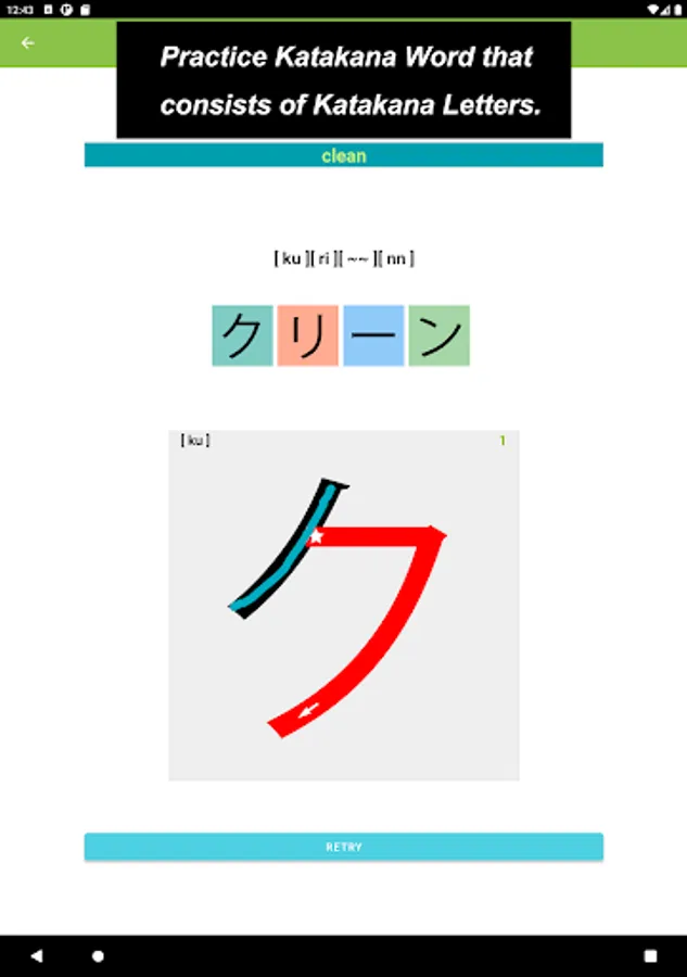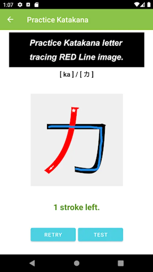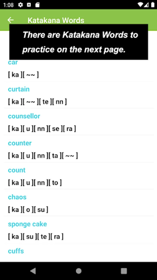 What you would see in this app is a list of Katakana letters. If you tap one of those letters, you can practice how to draw its letter.