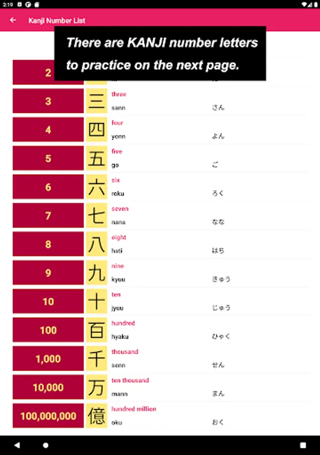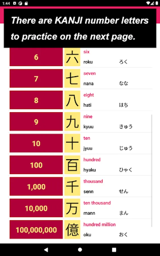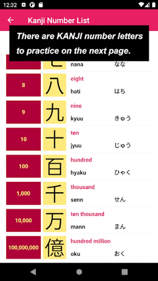 This app has been created with people who are interested in Japanese letters, Kanji Number in particular, hoping that you might gain the chance of learning more.