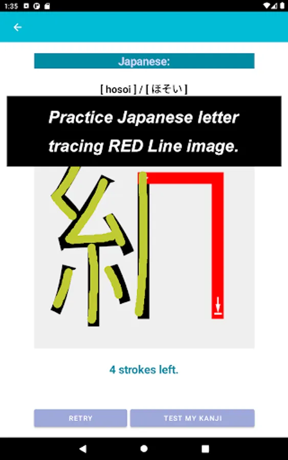 Enjoy drawing Japanese letters and hopefully get used to read / write some Japanese words using the app!
