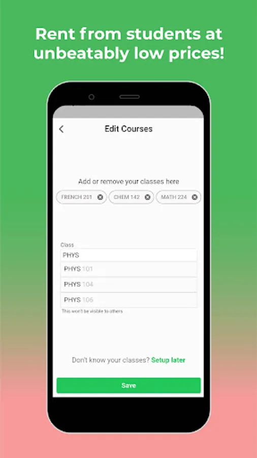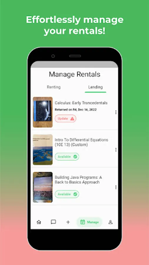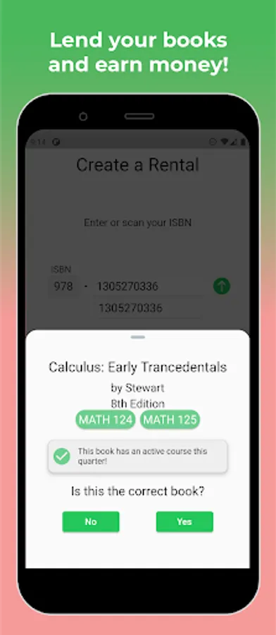 Our app promotes an easy way for students to get textbooks at a lower price. We also allow students to earn back on textbooks they’ve bought. We hope to improve your college experience with the following features: