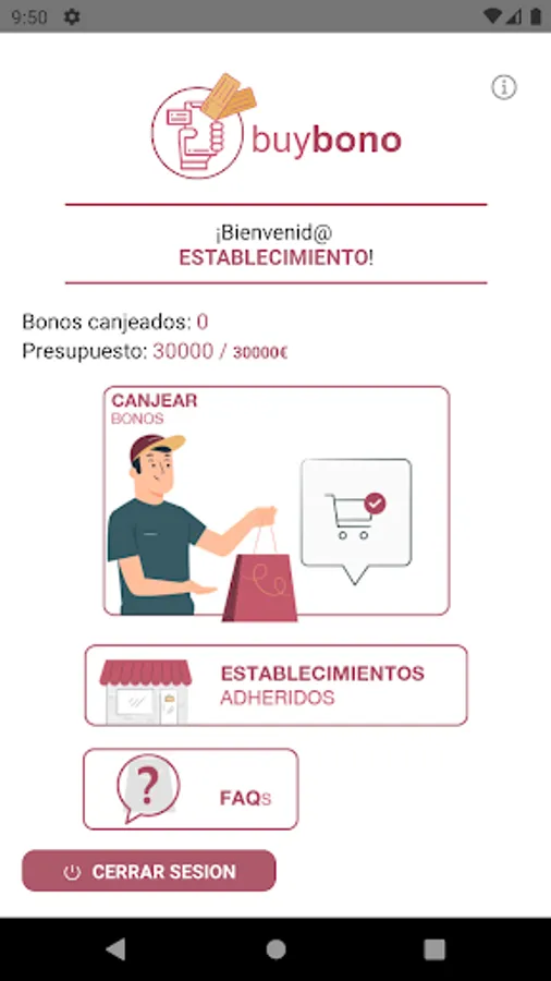 Establishments must access BUYBONO from their mobile phone with the user data provided when registering for the campaign and validate each consumption voucher from the application before applying it to the customer.