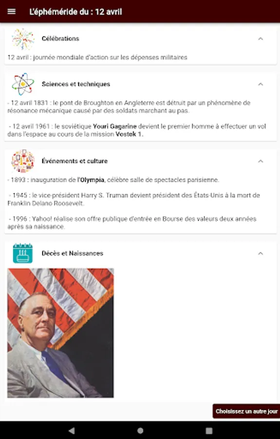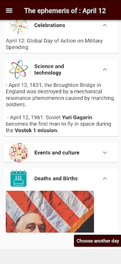 This application also allows to know the historical events of the world in several fields such as science, culture, religion.