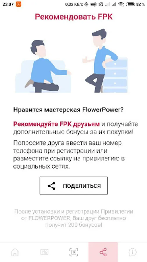 2. You have downloaded our application and registered in it. And you, being a member of the FlowerPower Privilege program, recommend it to your friends and acquaintances. For the purchases they make in FlowerPowerKzn or Airballs, you get points and you can also use them as a partial payment for any product presented in the company.
