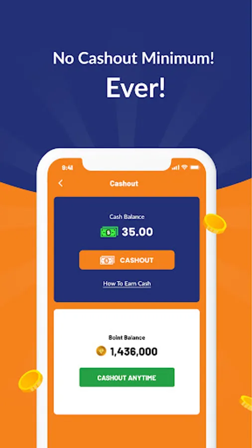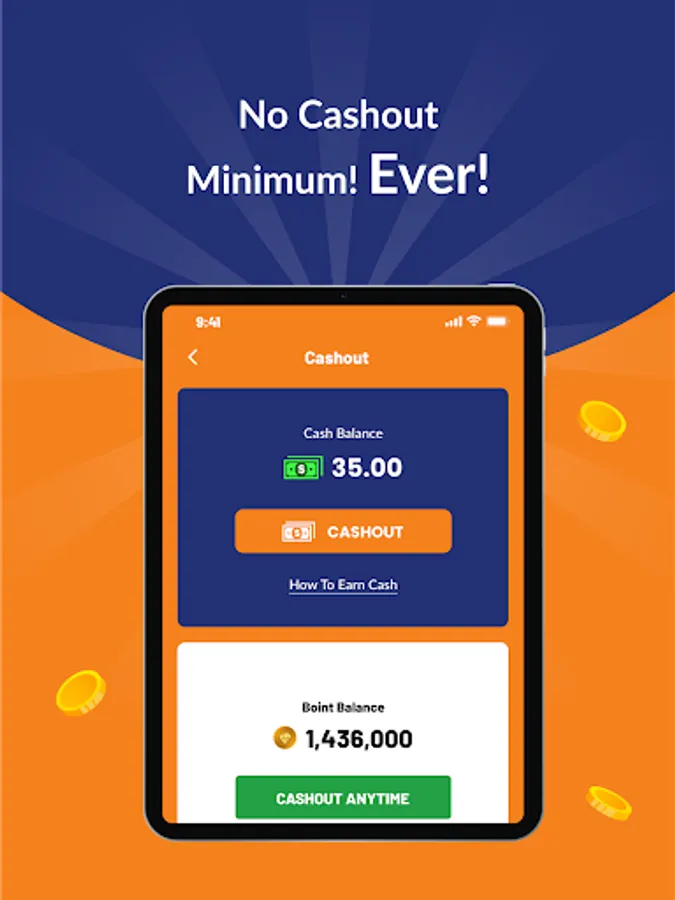There’s no cashout minimum. So you can cashout any amount you earn. Get paid via Paypal or gift card.