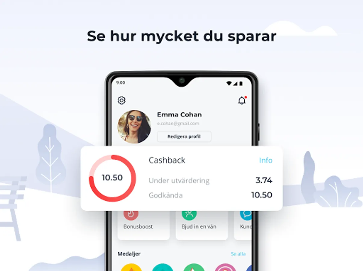 Download the app, register at Cashbackshopping.se and start shopping, as usual. The Cashbackshopping.se app helps you keep your budget under control!