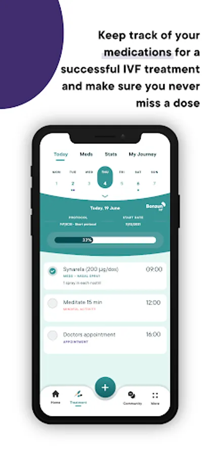 Take control of your IVF-treatment! Bonzun IVF guides you step by step through the IVF process and is designed to relieve stress and anxiety through several smart and helpful functions. Ultimately, improving the chances to have a successful treatment. We explain every step, what is happening, what to expect and what to think about. Other functions such medication tracker to make sure you never miss a dose, emotional support, “clone the app” with your chosen partner and much more. Take the chance and get your free trial today! Making one of the toughest journeys a bit easier.