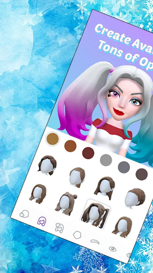 Avatar facemoji with great variety of skin tones, eye colors, hair styles, hair colors and more. You can make your own 3D character & facemoji that looks just like you.
