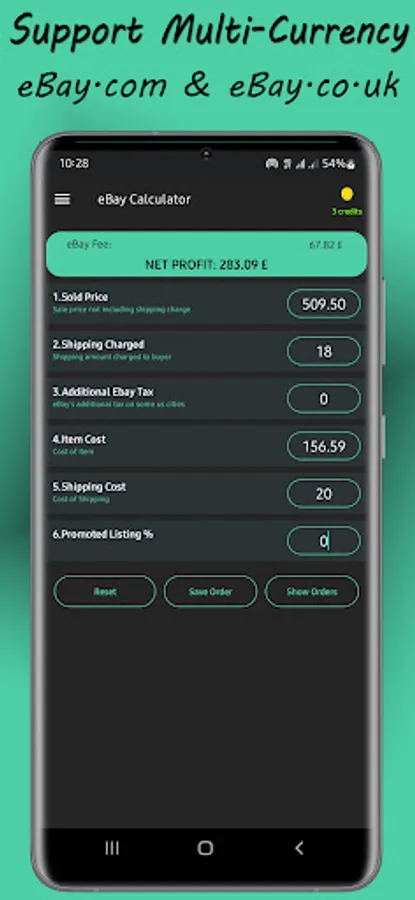 The eBay profit calculator app is a powerful fees calculator, that enables you to calculate your eBay fees and your profit margin for each order with high accuracy.