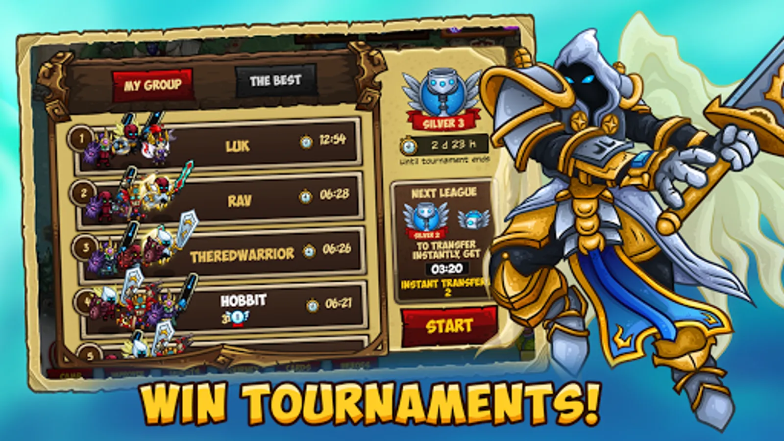 The game is filled with war strategy and tactics of castle defense! Explore the world, fight monsters, conquer all missions, beat bosses, and win tournaments!