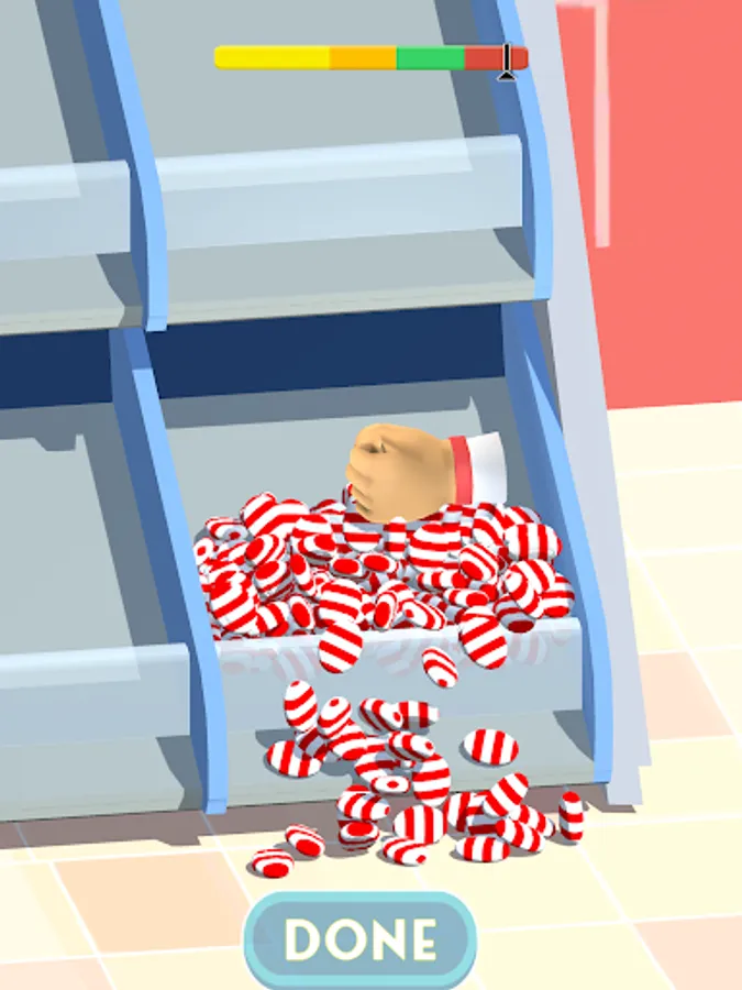 Satisfyingly fill the candy containers with cool colorful candies, dont OVERFLOW !!