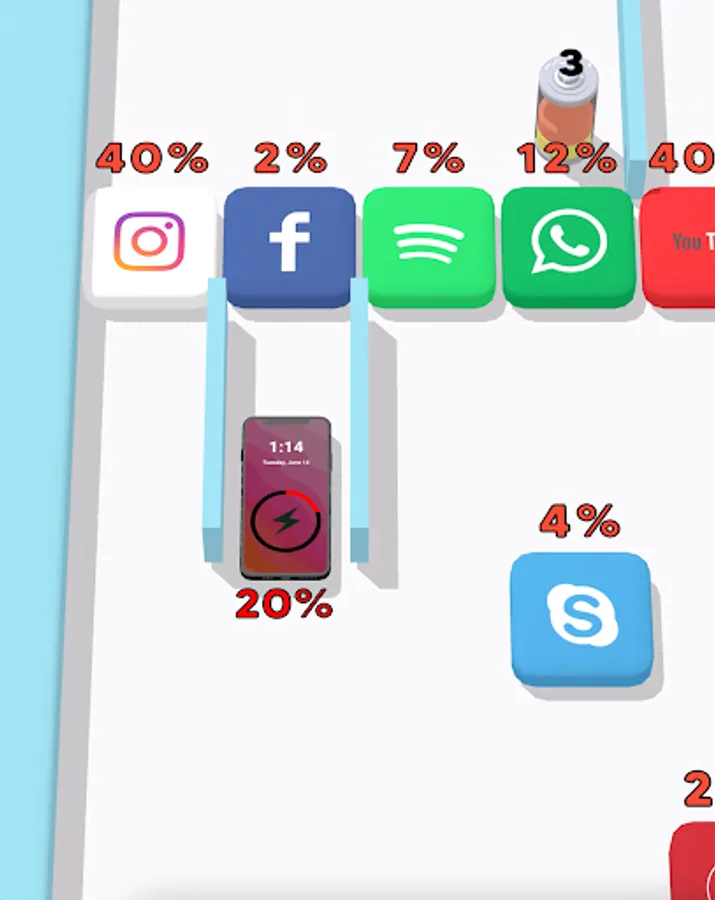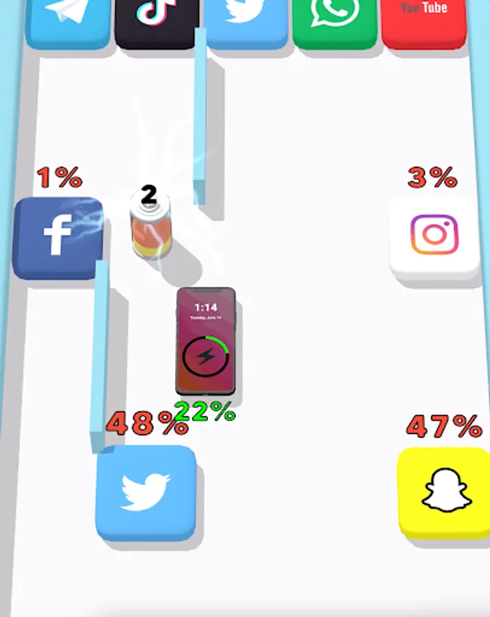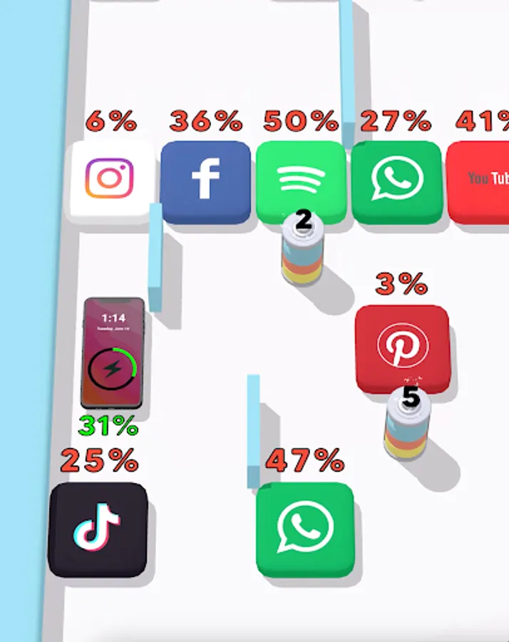 Super fun game where you collect phone battery and collide with the lowest battery draining icon to make your way towards the end only to unlock a new icon and keep playing cool levels designed uniquely for this great experience