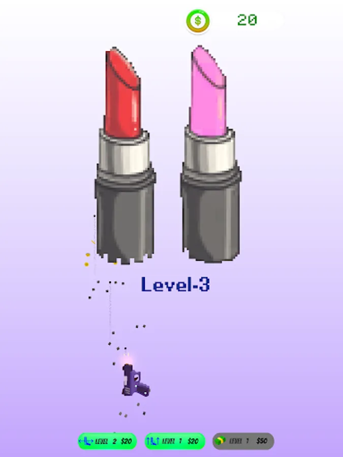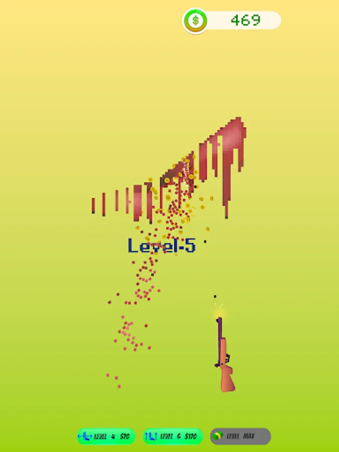 Upgrade your toy guns to demolish the pixels in this cool satisfying pixel shooter game. Tap the screen to shoot faster while upgrade the income part as well to make more in game coins.