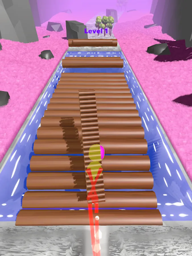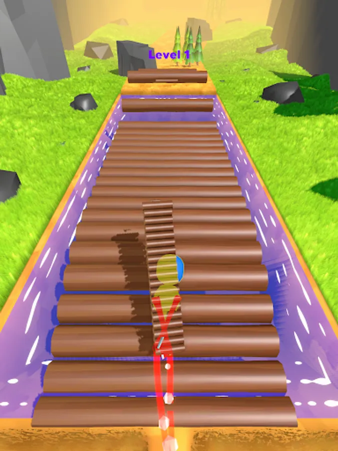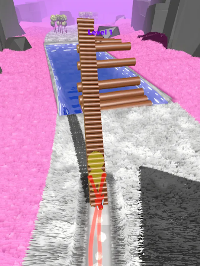 Go for the trees to collect as much wood log stack as possible while using them to make bridge and ultimately reaching the end to make multiple wooden houses on yardstick.