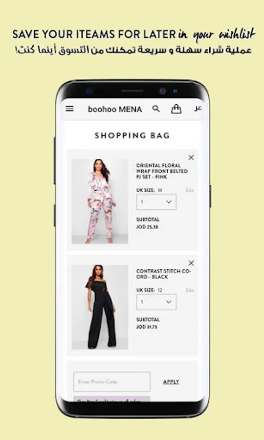 Shop the latest drops of what's hot and just landed straight from your phone! With the boohoo MENA app, you'll never miss out on new affordable fashion again. We add hundreds of new sizzling styles every single day. You can order straight from our app, or save items to lust after later on any device. Use the app to order your must-have essentials, treat yourself to a weekend outfit or just for some inspo. Spend less time on the boring stuff and get your clothes with speed and ease with our brand new checkout.
