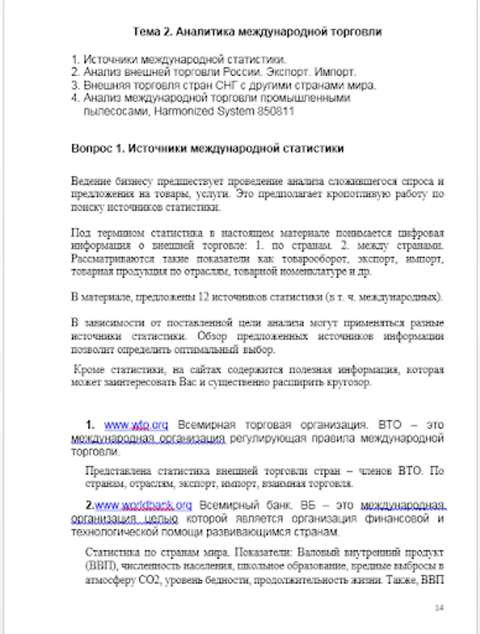 The manual is the first systematized practical material that includes all sections of foreign economic activity: analytics, sources of statistics, international trade rules (Incoterms2020), TN VED, customs duties, logistics, how to calculate profit, return on capital investments, the international form of the contract.