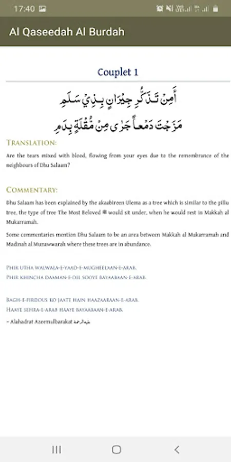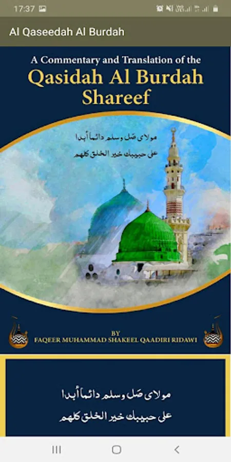 This is a English translation and commentary on the famous Al-Qaseedah Al-Burdah of Al-Shaikh Al-Imam Sharfuddin BuSiri [Rahmatullaahi Alalih] by Hadrat Allamah Maulana Shakil Qadiri Razawi Sahib [Madda Zilluhul Aali]. The original Arabic couplets are followed by translation and then by commentary, the reader can feel it that Hadrat has beautifully compiled the work.