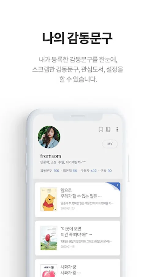 -You can receive recommended books that suit your taste through registered hashtags and inspirational phrases.