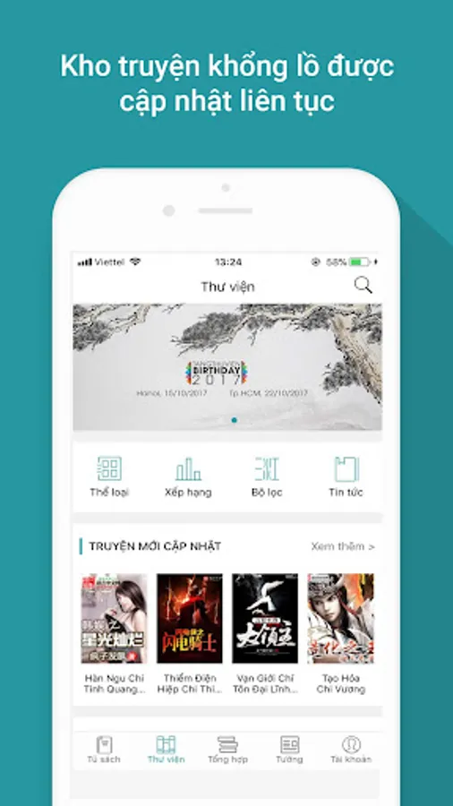 With a huge volume of stories and thousands of content members, the application always meets readers with the latest and fastest story chapters.