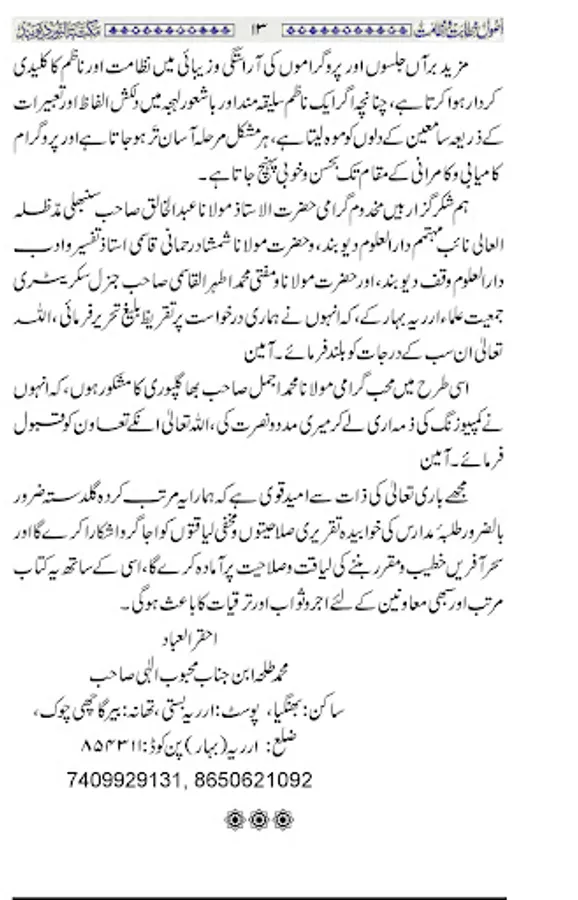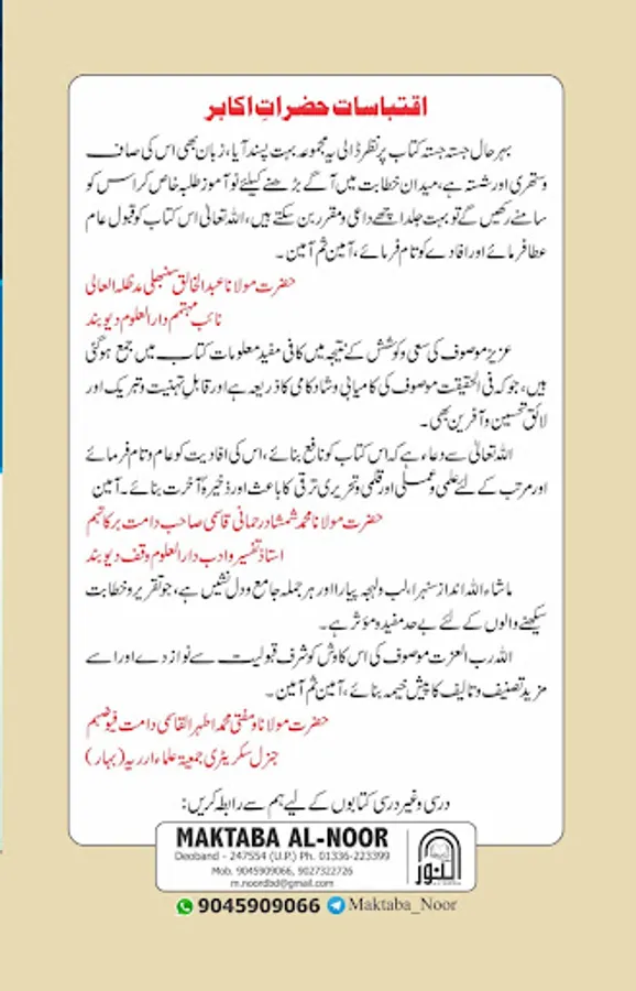 1.Zere nazar Kitab (Usoole Khitabat wa Nizamat) jisko janab Molana Muhammad Talha Qasmi (slh) ne Tarteeb dya hai