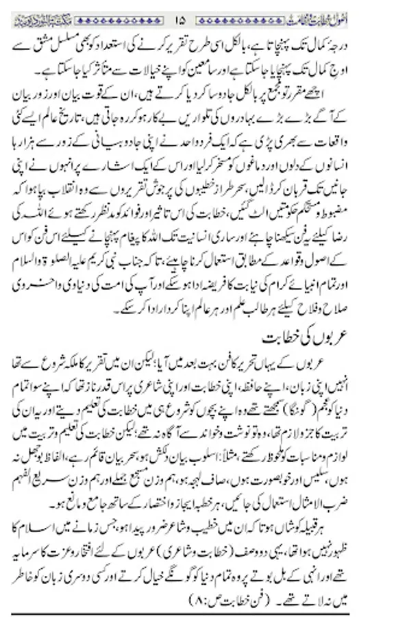 3. Shuroo kitab men khitabat ki tareef iska maqsab aur khitabat ki qismen neez taqreer ki taiyyari ke marahil aur khateeb ke liye jin heezon ka lihaz na guzair hota hai un sab ko bayaan kiya hai.