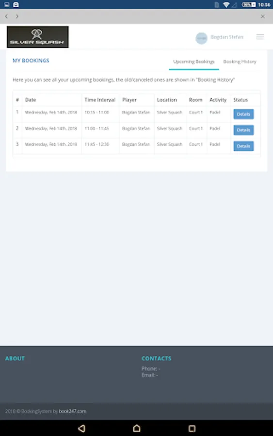 Book247 is a booking software created for the clubs, with the members in mind. We are offering a mobile platform that joins and groups together all the accounts you can have under www.book247.com clubs ecosystem and have them available with a single click from this great mobile application.