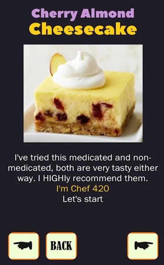 This app is a handy cookbook for 420 cannabis edible recipes, absolutely charming and fun, it contains the most inspiring and easy-to-use cannabis recipes. It is the full version for free, no ads, and it works totally offline. This app is your kitchen mate, 100% helpful in baking incredible weed-cheesecakes, weed-brownies, canna-candies and other HIGHly tasty yummies.